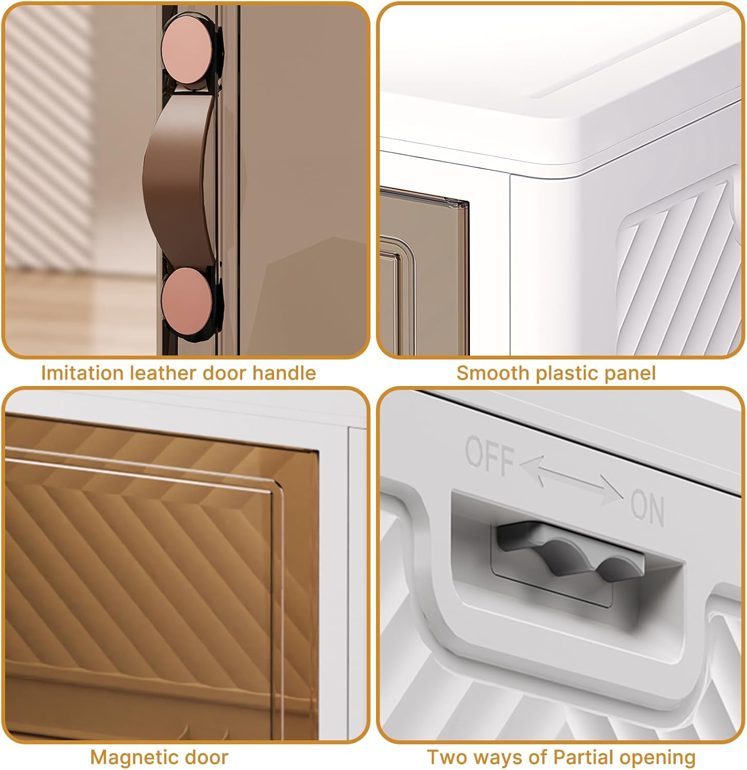 - EACH 2.6INCH FOLDABLE & TOOLS-FREE ASSEMBLY: Setting up these stackable storage bins with doors is quick and simpleโNO TOOLS NEEDED. You can have them ready to use in just minutes.Easily fold down to JUST 2.6 inches each tiers when not in use. Especially when you want to move house, you don't need to move bulky cabinets and worry about them being damaged due to transportation. It is a good alternative idea to fixed furniture cabinets and small miscellaneous boxes!
