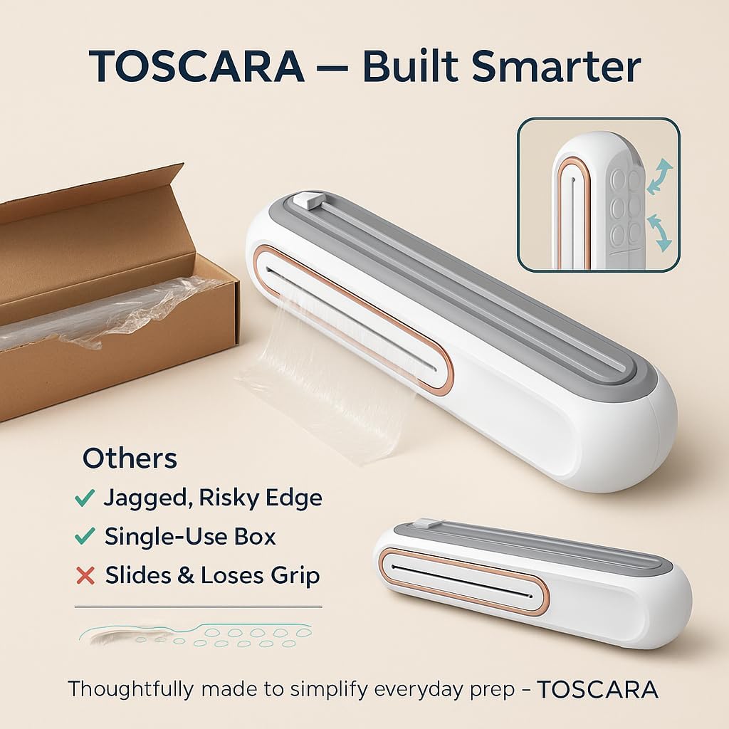 Food Plastic Wrap Dispenser ā Refillable ABS Plastic Wrap Dispenser with Safe Slide Cutter ā Compact Cling Film, Foil & Baking Paper Easy-Cut Organizer for Fresh Food Storage- Fit 30cm roll