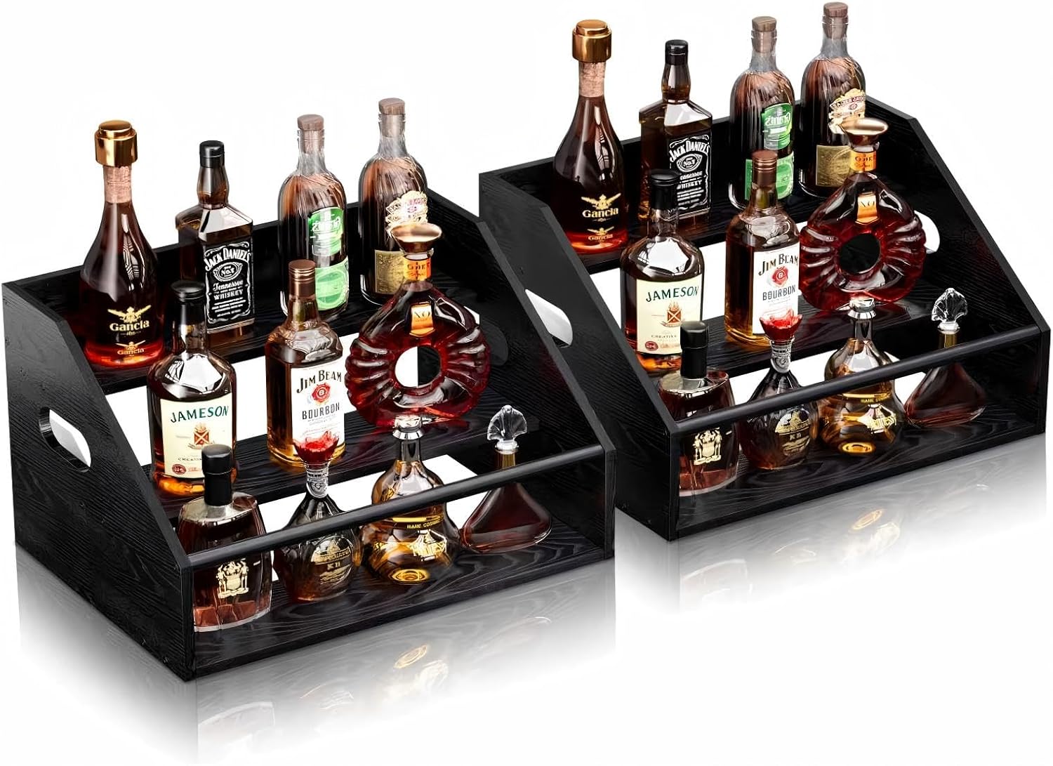 2Pack 3 Tier Wood Liquor Bottle Display Shelf, Coffee Syrup Organizer Rack, Wine Racks Countertop, Bar Shelf for Vodka Tequila Whiskey, Liquor Cabinet for Home Decor, Mini Bar, Black Bar Organizer